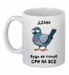 Нанести принт Діана будь як голуб на глянцевую керамическую чашку можно только на наружную сторону. Цвет принта можно заказать любой!