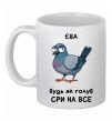 Нанести принт Єва будь як голуб на глянцевую керамическую чашку можно только на наружную сторону. Цвет принта можно заказать любой!