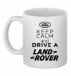 Нанести принт Keep calm and drive Land Rover на глянцевую керамическую чашку можно только на наружную сторону. Цвет принта можно заказать любой!