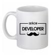 Нанести принт Senior developer на глянцевую керамическую чашку можно только на наружную сторону. Цвет принта можно заказать любой!