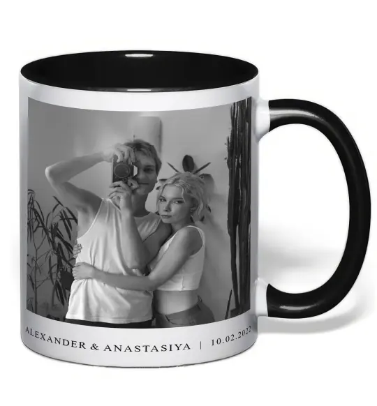 Нанести принт Фото з підписом та датою на глянцевую керамическую чашку можно только на наружную сторону. Цвет принта можно заказать любой!