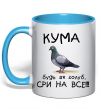 Нанести принт Кума будь як голуб на глянцевую керамическую чашку можно только на наружную сторону. Цвет принта можно заказать любой!