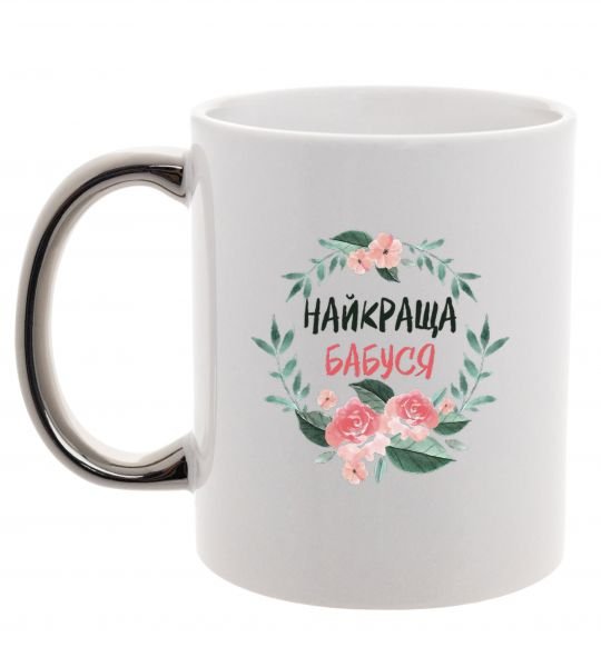 Чашка с цветной ручкой Найкраща бабуся (квіти)