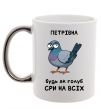 Нанести принт Петрівна будь як голуб на глянцевую керамическую чашку можно только на наружную сторону. Цвет принта можно заказать любой!
