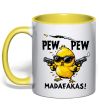 Чашка с цветной ручкой Pew pew chicken