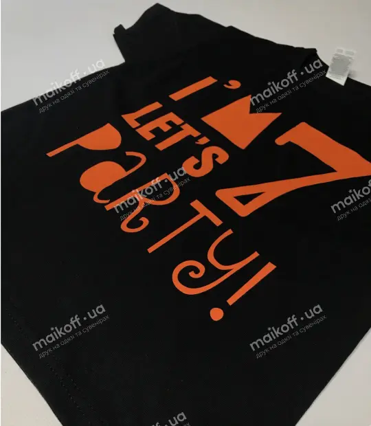 Футболка прямого кроя с боковыми швами. Ткань 100% хлопок - мягкая и приятная на ощупь. После стирки, при правильном уходе, футболка не растягивается, не садится и не линяет. Нанести принт I am 7 let is party на детскую футболку можно на грудь, на спину, на рукав. Цвет принта можно заказать любой!