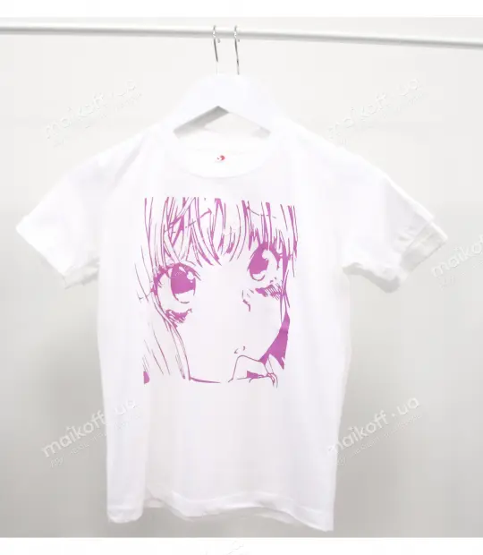 Футболка прямого кроя с боковыми швами. Ткань 100% хлопок - мягкая и приятная на ощупь. После стирки, при правильном уходе, футболка не растягивается, не садится и не линяет. Нанести принт Дівчинка аніме рожевого кольору на детскую футболку можно на грудь, на спину, на рукав. Цвет принта можно заказать любой!
