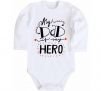 Боди для младенцев My dad is my hero с длинным рукавом. Сшит из интерлока, 100% хлопок.