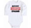 Боди для младенцев Денис завжди правий с длинным рукавом. Сшит из интерлока, 100% хлопок.