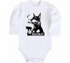 Боди для младенцев Doberman with gun с длинным рукавом. Сшит из интерлока, 100% хлопок.