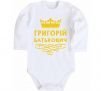 Боди для младенцев Григорій Батькович с длинным рукавом. Сшит из интерлока, 100% хлопок.