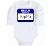 Боди для младенцев Hello my name is Sophia с длинным рукавом. Сшит из интерлока, 100% хлопок.