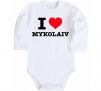 Боди для младенцев I love Mykolaiv с длинным рукавом. Сшит из интерлока, 100% хлопок.