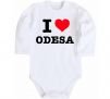Боди для младенцев I love Odesa с длинным рукавом. Сшит из интерлока, 100% хлопок.
