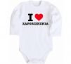 Боди для младенцев I love Zaporizhzhia с длинным рукавом. Сшит из интерлока, 100% хлопок.