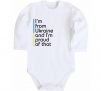 Боди для младенцев Im from Ukraine and Im proud of that с длинным рукавом. Сшит из интерлока, 100% хлопок.