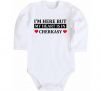 Боди для младенцев I'm here but my heart is in Cherkasy с длинным рукавом. Сшит из интерлока, 100% хлопок.