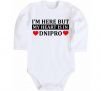 Боди для младенцев I'm here but my heart is in Dnipro с длинным рукавом. Сшит из интерлока, 100% хлопок.