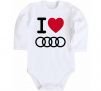 Боди для младенцев I love audi Logo с длинным рукавом. Сшит из интерлока, 100% хлопок.