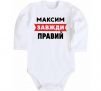 Боди для младенцев Максим завжди правий с длинным рукавом. Сшит из интерлока, 100% хлопок.