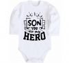 Боди для младенцев Son you are my hero с длинным рукавом. Сшит из интерлока, 100% хлопок.