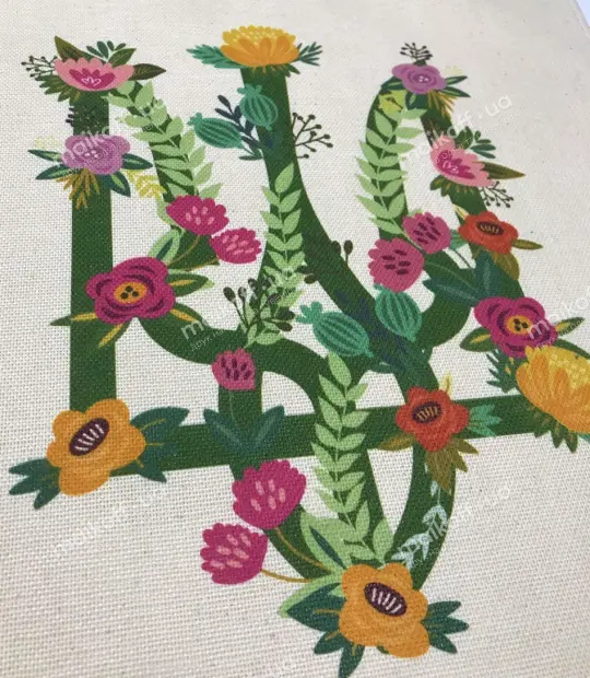 Натуральная саржевая эко-сумка. Нанести принт Герб з квітками на сумку можно любого цвета!