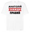 Футболка оверсайз прямого кроя с боковыми швами. Ткань 100% хлопок - мягкая и приятная на ощупь. После стирки при правильном уходе футболка не растягивается, не садится и не линяет. Нанести принт Анатолій завжди правий на футболку oversize можно на грудь, на спину, на рукав. Цвет принта можно заказать любой!