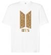 Футболка оверсайз прямого кроя с боковыми швами. Ткань 100% хлопок - мягкая и приятная на ощупь. После стирки при правильном уходе футболка не растягивается, не садится и не линяет. Нанести принт BTS gold logo на футболку oversize можно на грудь, на спину, на рукав. Цвет принта можно заказать любой!
