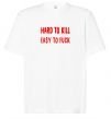 Футболка оверсайз прямого кроя с боковыми швами. Ткань 100% хлопок - мягкая и приятная на ощупь. После стирки при правильном уходе футболка не растягивается, не садится и не линяет. Нанести принт Hard to kill на футболку oversize можно на грудь, на спину, на рукав. Цвет принта можно заказать любой!