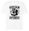Футболка оверсайз прямого кроя с боковыми швами. Ткань 100% хлопок - мягкая и приятная на ощупь. После стирки при правильном уходе футболка не растягивается, не садится и не линяет. Нанести принт Keep Calm And Say Cheese на футболку oversize можно на грудь, на спину, на рукав. Цвет принта можно заказать любой!