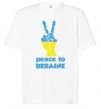 Футболка оверсайз прямого кроя с боковыми швами. Ткань 100% хлопок - мягкая и приятная на ощупь. После стирки при правильном уходе футболка не растягивается, не садится и не линяет. Нанести принт Peace to Ukraine на футболку oversize можно на грудь, на спину, на рукав. Цвет принта можно заказать любой!