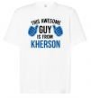 Футболка оверсайз прямого кроя с боковыми швами. Ткань 100% хлопок - мягкая и приятная на ощупь. После стирки при правильном уходе футболка не растягивается, не садится и не линяет. Нанести принт This awesome guy is from Kherson на футболку oversize можно на грудь, на спину, на рукав. Цвет принта можно заказать любой!
