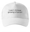 Нанести принт Busy growing a human на хлопковую пятипанельную кепку можно на лобовую, боковую и тыльную сторону (предварительно обговорив с менеджером). Размер кепки регулируется металлической застежкой. Цвет принта можно заказать любой!