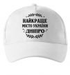 Нанести принт Дніпро найкраще місто України на хлопковую пятипанельную кепку можно на лобовую, боковую и тыльную сторону (предварительно обговорив с менеджером). Размер кепки регулируется металлической застежкой. Цвет принта можно заказать любой!
