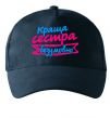 Нанести принт Краща сестра безумовно на хлопковую пятипанельную кепку можно на лобовую, боковую и тыльную сторону (предварительно обговорив с менеджером). Размер кепки регулируется металлической застежкой. Цвет принта можно заказать любой!