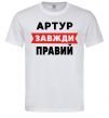 Футболка прямого кроя без боковых швов. Ткань 100% хлопок - мягкая и приятная на ощупь. После стирки, при правильном уходе, футболка не растягивается, не садится и не линяет. Нанести принт Артур завжди правий на футболку можно на грудь, на спину, на рукав. Цвет принта можно заказать любой!