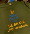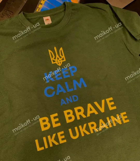 Футболка прямого кроя без боковых швов. Ткань 100% хлопок - мягкая и приятная на ощупь. После стирки, при правильном уходе, футболка не растягивается, не садится и не линяет. Нанести принт Be brave like Ukraine на футболку можно на грудь, на спину, на рукав. Цвет принта можно заказать любой!