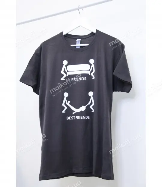 Футболка прямого кроя без боковых швов. Ткань 100% хлопок - мягкая и приятная на ощупь. После стирки, при правильном уходе, футболка не растягивается, не садится и не линяет. Нанести принт BEST FRIEND на футболку можно на грудь, на спину, на рукав. Цвет принта можно заказать любой!