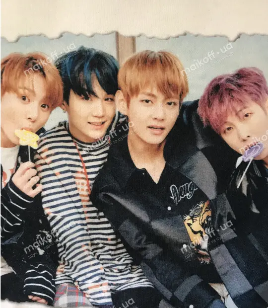 Футболка прямого кроя без боковых швов. Ткань 100% хлопок - мягкая и приятная на ощупь. После стирки, при правильном уходе, футболка не растягивается, не садится и не линяет. Нанести принт BTS photo на футболку можно на грудь, на спину, на рукав. Цвет принта можно заказать любой!