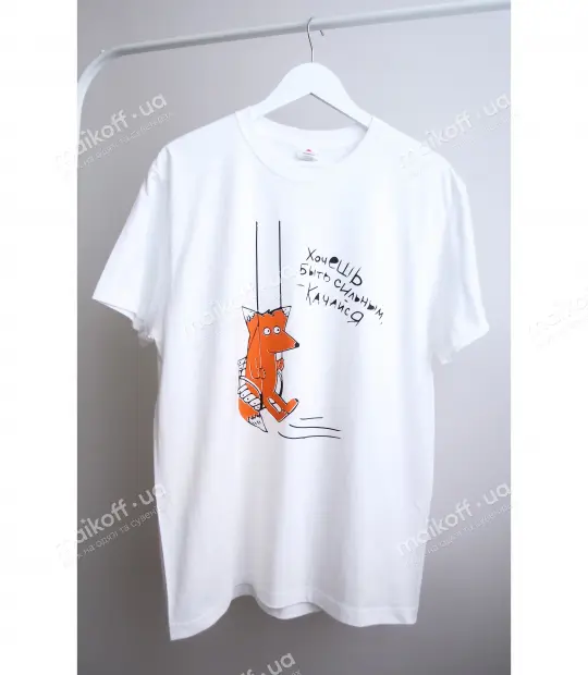 Футболка прямого кроя без боковых швов. Ткань 100% хлопок - мягкая и приятная на ощупь. После стирки, при правильном уходе, футболка не растягивается, не садится и не линяет. Нанести принт Хочеш бути сильним - качайся на футболку можно на грудь, на спину, на рукав. Цвет принта можно заказать любой!