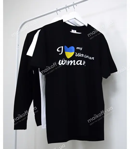 Футболка прямого кроя без боковых швов. Ткань 100% хлопок - мягкая и приятная на ощупь. После стирки, при правильном уходе, футболка не растягивается, не садится и не линяет. Нанести принт I love my Ukrainian woman на футболку можно на грудь, на спину, на рукав. Цвет принта можно заказать любой!