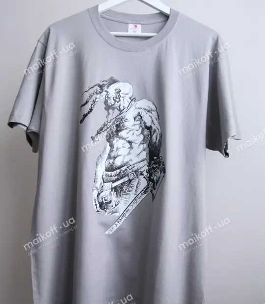 Футболка прямого кроя без боковых швов. Ткань 100% хлопок - мягкая и приятная на ощупь. После стирки, при правильном уходе, футболка не растягивается, не садится и не линяет. Нанести принт Козак з шаблею на футболку можно на грудь, на спину, на рукав. Цвет принта можно заказать любой!