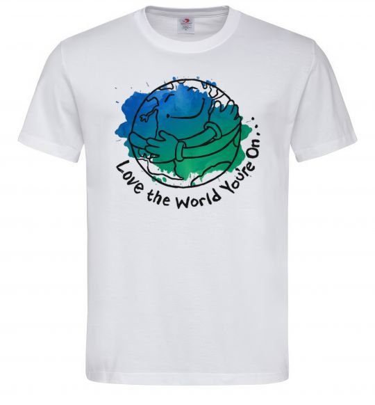 Футболка прямого кроя без боковых швов. Ткань 100% хлопок - мягкая и приятная на ощупь. После стирки, при правильном уходе, футболка не растягивается, не садится и не линяет. Нанести принт Love the world you're on на футболку можно на грудь, на спину, на рукав. Цвет принта можно заказать любой!