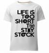 Мужская премиум-футболка собственного производства. Выполнена из качественной ткани (95% хлопок, 5% эластан) — плотная, мягкая и приятная к телу. Принт Life is too short to stay stack можно нанести на грудь, спину или рукав.
