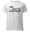 Мужская премиум-футболка собственного производства. Выполнена из качественной ткани (95% хлопок, 5% эластан) — плотная, мягкая и приятная к телу. Принт Мій дідусь найкращий можно нанести на грудь, спину или рукав.