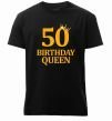 Мужская премиум-футболка собственного производства. Выполнена из качественной ткани (95% хлопок, 5% эластан) — плотная, мягкая и приятная к телу. Принт 50 birthday queen можно нанести на грудь, спину или рукав.