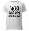 Мужская премиум-футболка собственного производства. Выполнена из качественной ткани (95% хлопок, 5% эластан) — плотная, мягкая и приятная к телу. Принт Моя бабуся найкраща! можно нанести на грудь, спину или рукав.