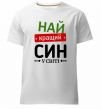Мужская премиум-футболка собственного производства. Выполнена из качественной ткани (95% хлопок, 5% эластан) — плотная, мягкая и приятная к телу. Принт Найкращий син у світі (зірочки) можно нанести на грудь, спину или рукав.