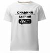 Мужская премиум-футболка собственного производства. Выполнена из качественной ткани (95% хлопок, 5% эластан) — плотная, мягкая и приятная к телу. Принт Сильний гарний брат можно нанести на грудь, спину или рукав.