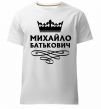 Мужская премиум-футболка собственного производства. Выполнена из качественной ткани (95% хлопок, 5% эластан) — плотная, мягкая и приятная к телу. Принт Михайло Батькович можно нанести на грудь, спину или рукав.